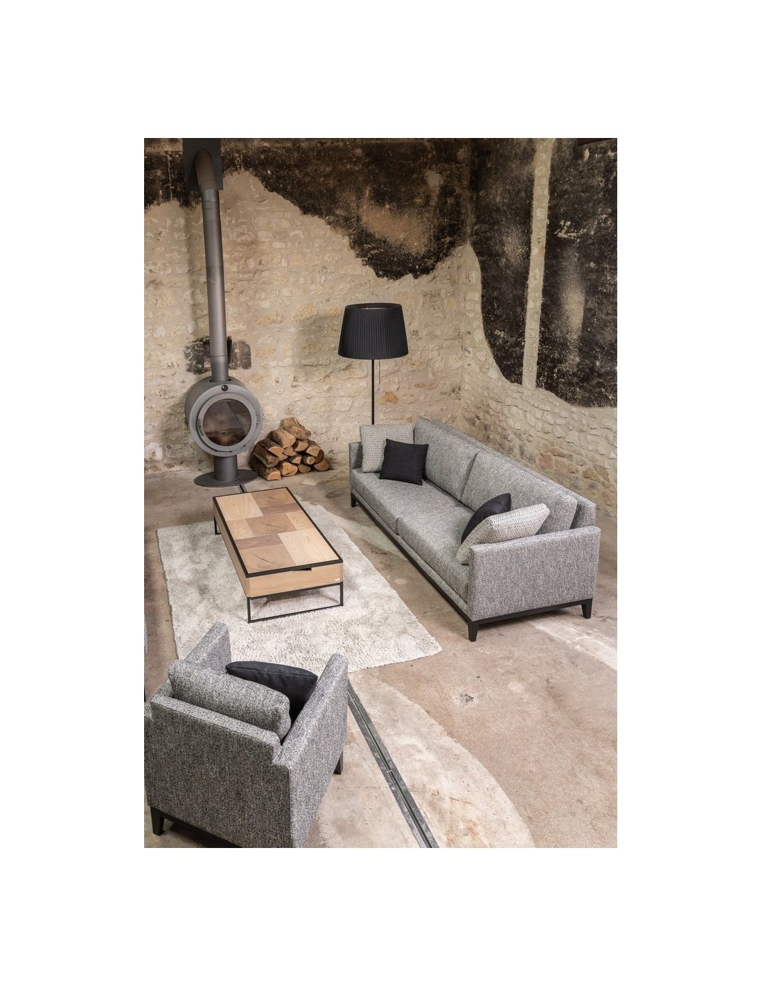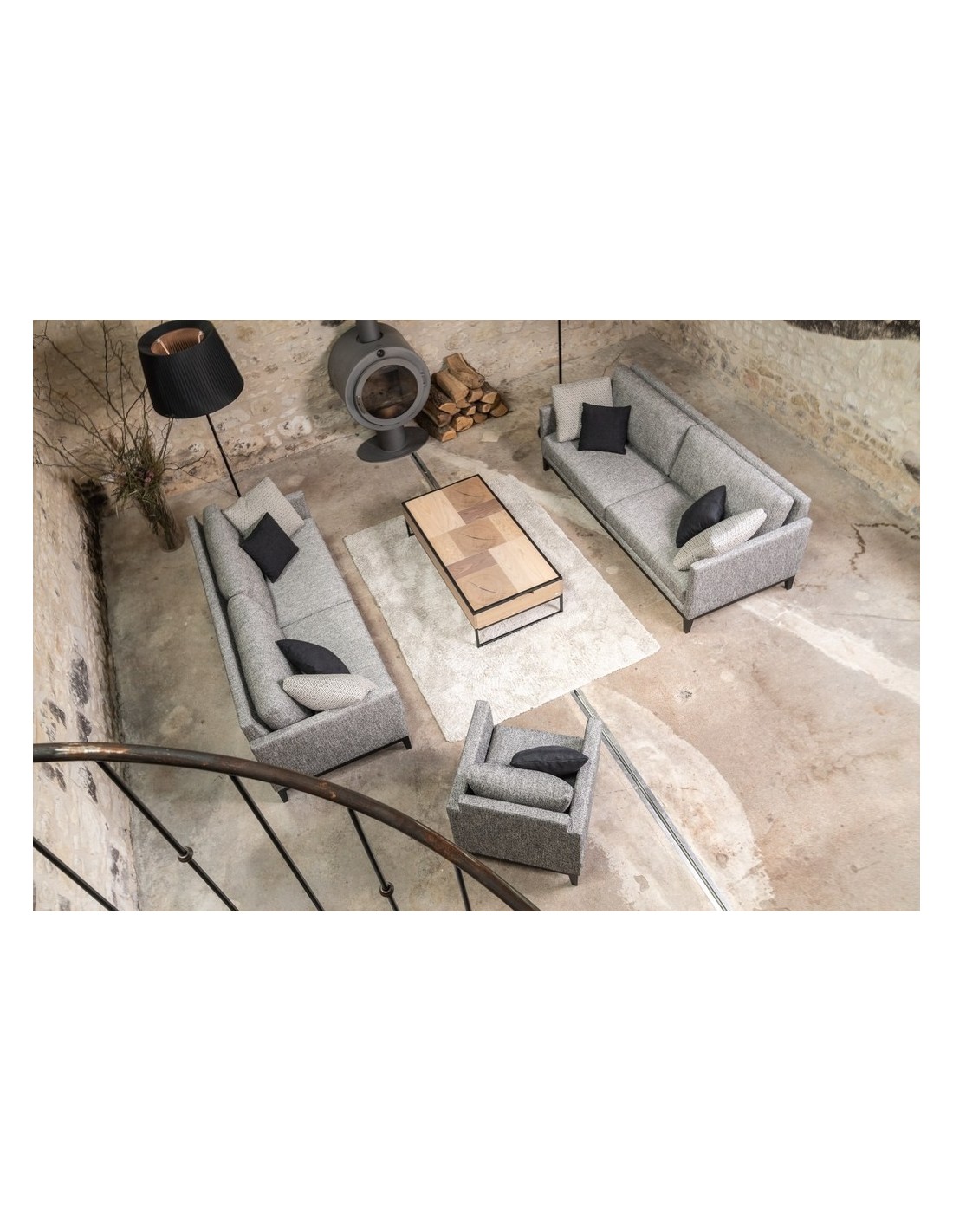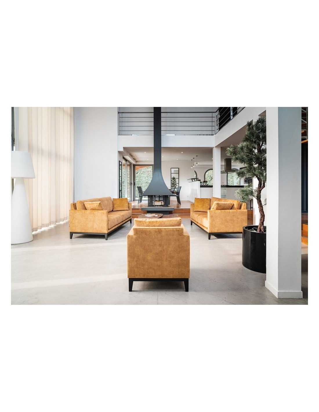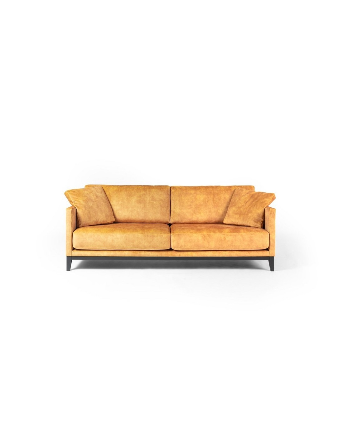Un canapé aux lignes simples et épurées qui lui confèrent une allure légère des plus élégantes. Une assise avec des coussins épais mais infiniment moelleux et un dossier doux mais qui soutient en même temps. Son socle en bois accentue son style aérien et élancé.