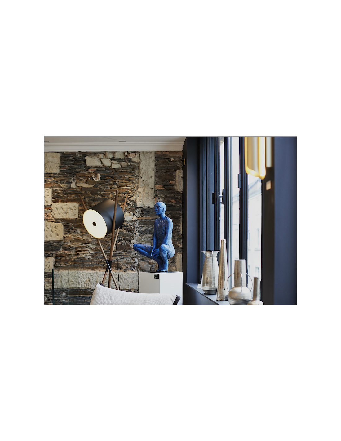 Lampe de sol Shift L par Artisan avec structure en bois massif, diffuseur en acier thermolaqué blanc ou noir. Imaginée et conçue par Regular Company, cette lampe originale et exclusive trouvera facilement sa place dans votre intérieur. Préparé pour N.02 ampoules Led E27 7W (max 20W), tension 230V, 50 Hz, indice de protection IP44. Lampe équipée d'un variateur à 3 intensités. Dimensions: H 195 cm.